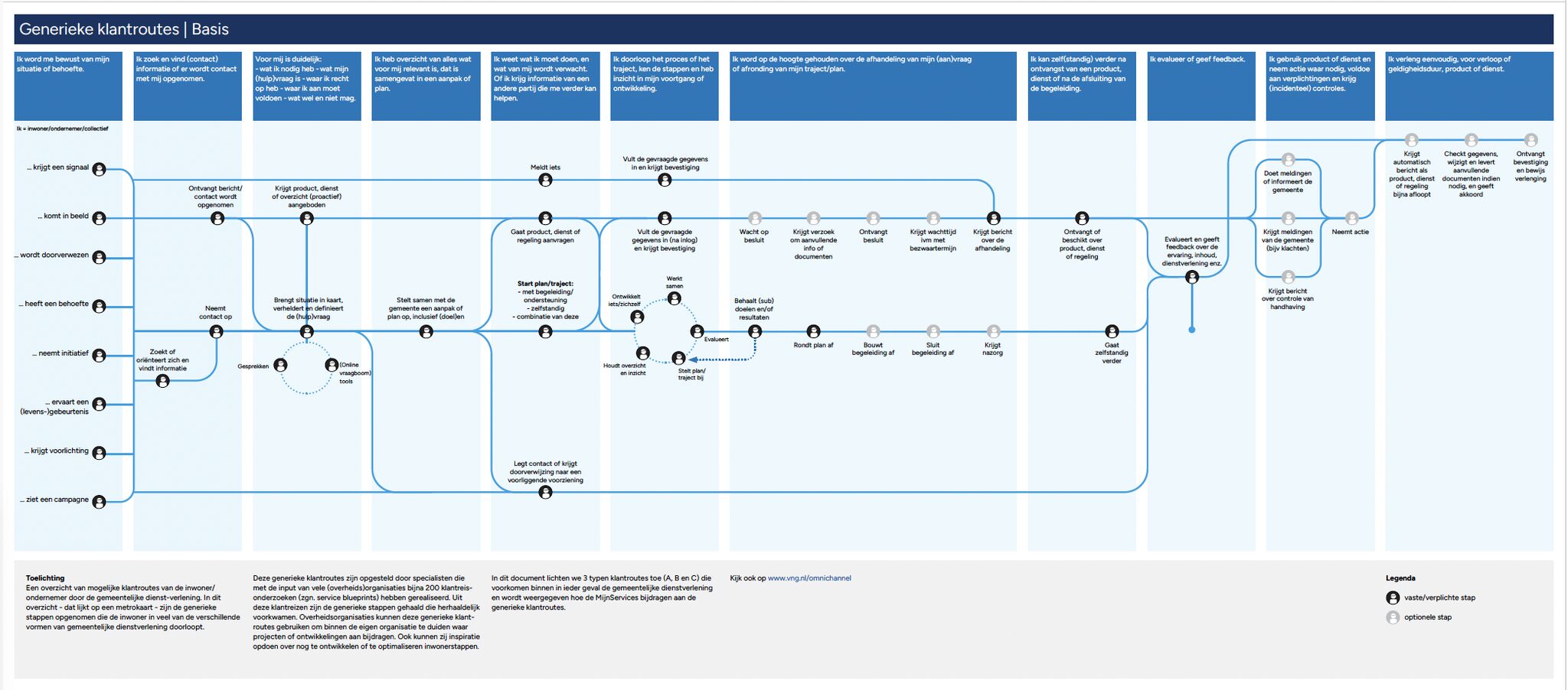 Gebaseerd op zo’n 200 klantreisonderzoeken (service blueprints) en verrijkt met praktijkkennis van gemeenten, ketenpartners en inwoners. Domeinonafhankelijk, vanuit het perspectief van de inwoner.